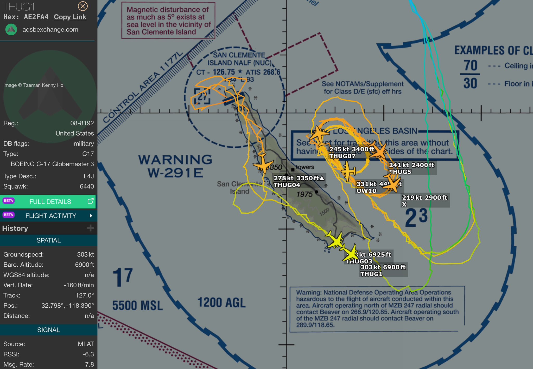 My guess is that Thug in this case was the group call sign of a whole group of aircraft differentiated by number. Judging from Thug1 (a C17) they might have been a squadron sized group of Air Force transport planes. Hard to say what they were doing there. Maybe practicing air drops on this Navy owned island (purely a guess).