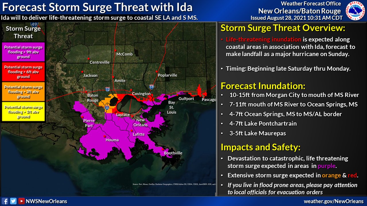 They are forcasting 10 to 15 foot surge in the swampy lowlands of the Mississippi delta south of the city. If that happens, it will put the whole area under water. This is where Port Fourchon is, a major port serving the offshore oil industry (and where SpaceX's rocket landing barges were built). There are some 600 offshore oil platforms within a 40 mile radius of Port Fourchon. It's a very big deal.