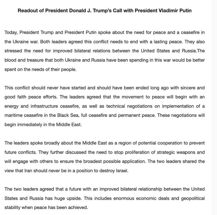 The White House says that US President Trump and Russian President Putin have been speaking (by video connection) for two hours, as Trump tries to convince Putin to accept a ceasefire in the Ukraine war.