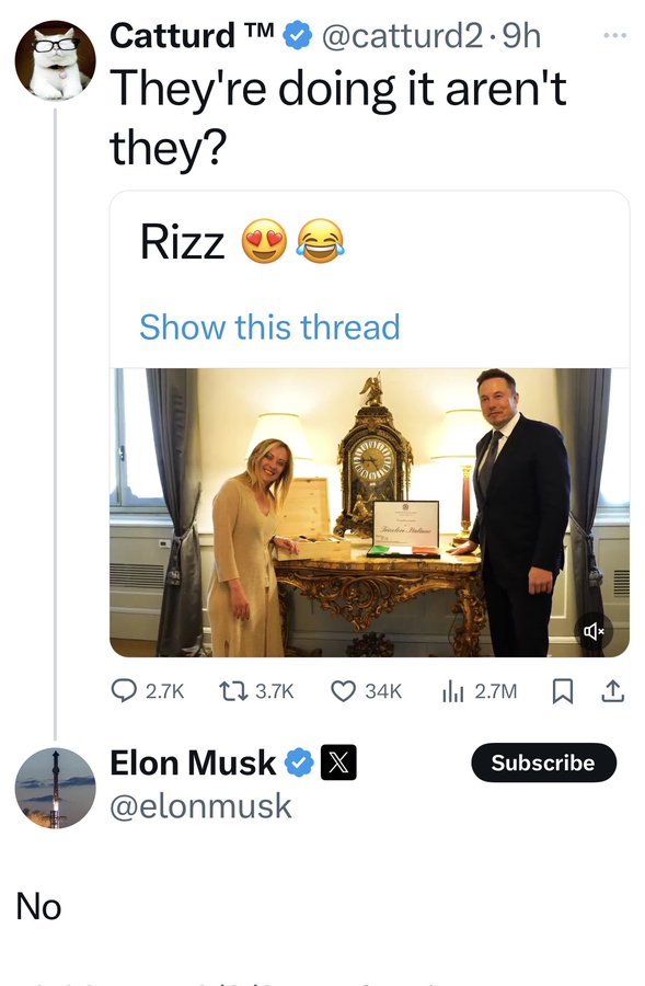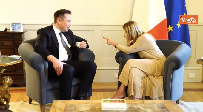 ![[Image: elon-musk-da-meloni-oltre-un-ora-di-inco...-chigi.jpg]](https://www.today.it/~media/horizontal-hi/2878560332532/elon-musk-da-meloni-oltre-un-ora-di-incontro-a-palazzo-chigi.jpg)