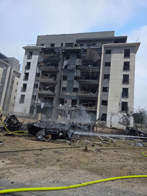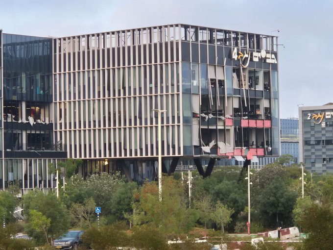 Another missile hit in a tech-industry industrial park in Beersheva, causing relatively minor blast damage to several buildings: