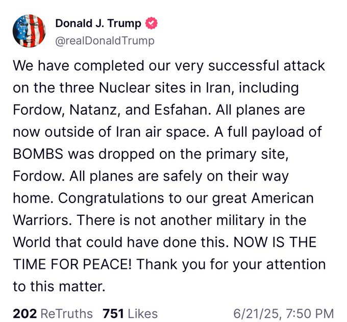 (Jun 21, 2025 01:12 PM)Syne Wrote: Trump has given Iran a deadline of two weeks to surrender.