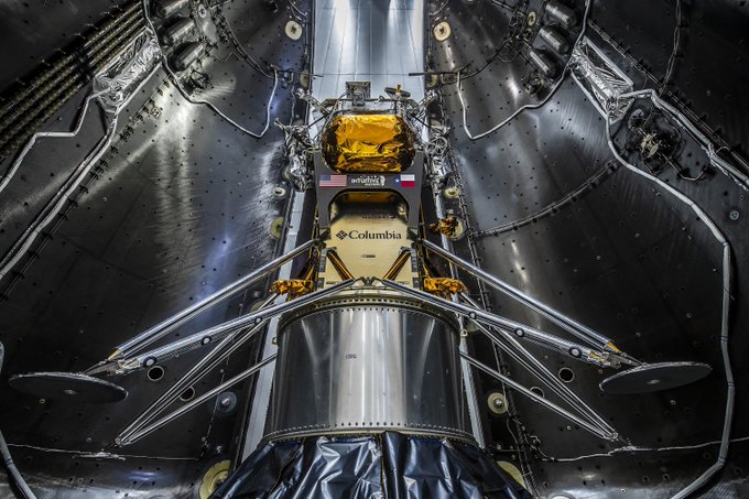 SpaceX photo of IM-1 inside its Falcon-9 payload fairing.