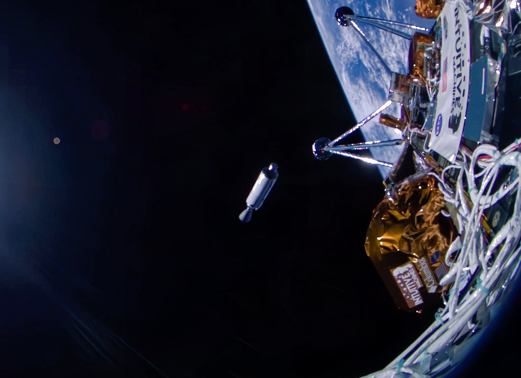 SpaceX photo of payload separation showing the Intuitive Machines Lander right after it was released from the Falcon 9 second stage.