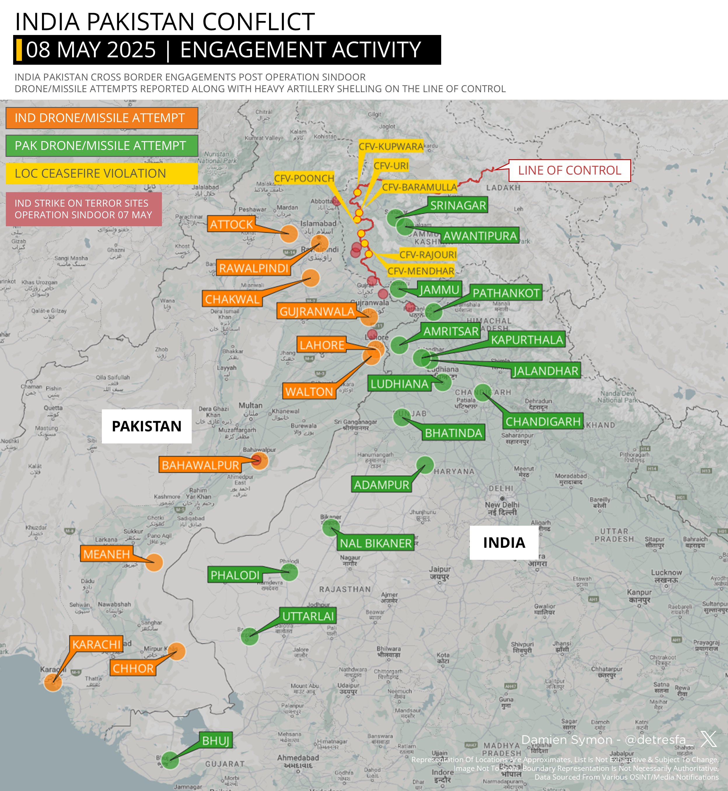 Latest is the sound of what might be explosions heard in the Indian city of Amritsar, near the border, less than an hour ago.