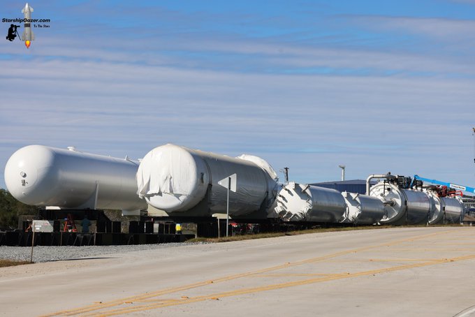 They have transported the pieces of the catching arms for Tower-2 from the Sanchez work area to the launch site, where they are being assembled and prepared for mounting on the tower.