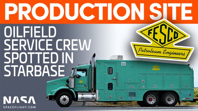But something interesting was happening at the Sanchez site on the far (western) side of the build site. Several serious looking trucks and a crew from Fesco Petroleum Engineers arrived. It seems that this company specializes in petroleum industry well "completions". This seems to be the process for a well that has already been drilled, where a well-head is installed and the well is prepared to produce. The relevance here is that it's known that there are two non-producing natural gas wells on the Sanchez property. I assume they are capped off. Ownership of the wells is disputed and has been the subject of a court case. If SpaceX has acquired ownership or has made a deal with whoever has, they may be preparing to get the wells producing natural gas again. They will need specialized expertise for that, hence Fesco. It's known that's the long term SpaceX plan and some of the gear for a natural gas purification refinery is already on-site, to refine natural gas down to pure methane. Liquify it, and voila! Rocket fuel! Food for the Raptors.