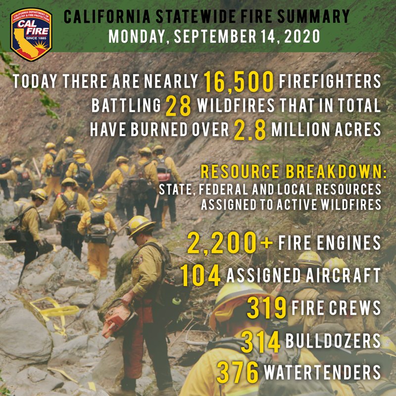(Sep 10, 2020 02:53 PM)Secular Sanity Wrote: "As of September 9, 2020, a total of 7,606 fires have burned 2,936,955 acres, making 2020 the largest wildfire season recorded in California history."