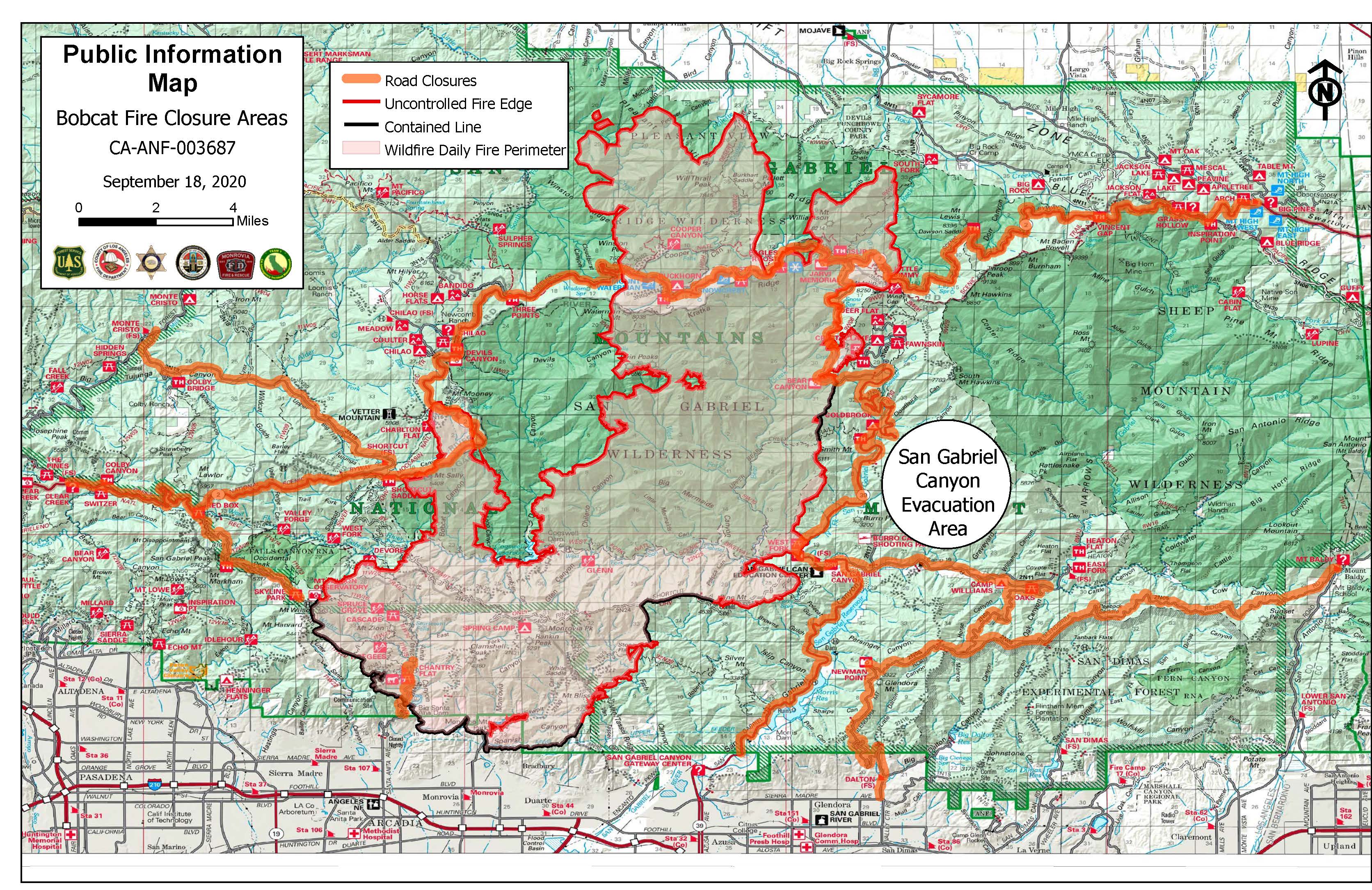Map from the Angles National Forest twitter page. Mt. Wilson is at the lower left tip of the fire, where the black (controlled) and red (uncontrolled) outline lines meet. The observatory still isn't out of danger, but the immediate threat is reduced.