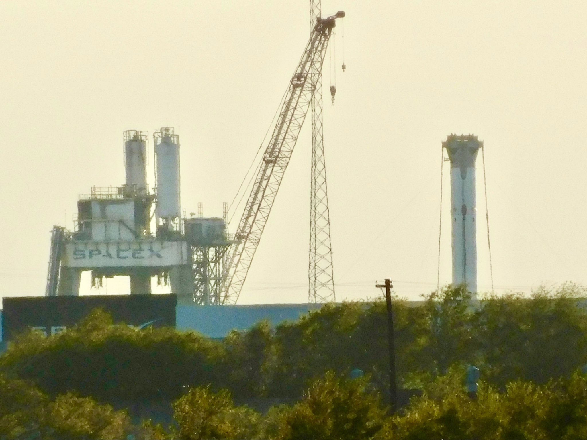 And it wouldn't be SpaceX if there wasn't a big crane in the shot. And a tower. (This one a little skinny one, perhaps a lightning tower.)